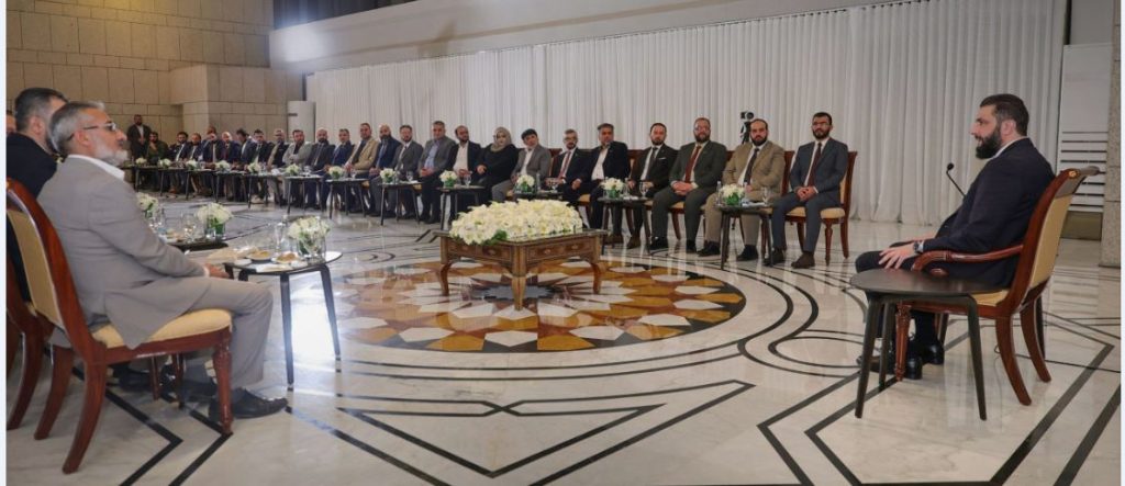 الرئيس الشرع يبحث مع إعلاميين ونشطاء دور الإعلام والمبادرات المجتمعية بتعزيز الوعي