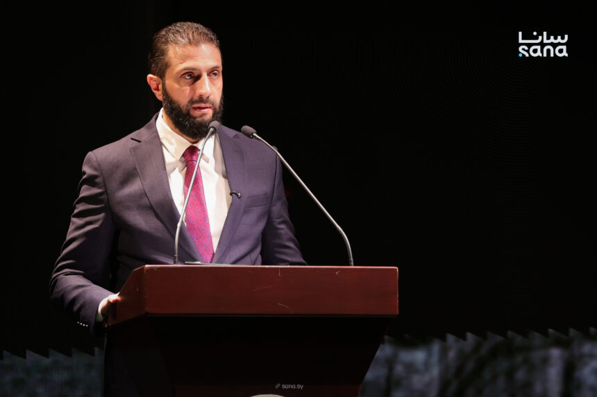 وأضاف الرئيس الشرع: وتذكروا يا أهل سوريا أننا ما وصلنا إلى ما وصلنا إليه اليوم إلا بفضل تضحيات عظيمة، فمئات الآلاف من الشهداء والمفقودين وصيحات المعذبين والمشردين، فتضحياتهم أمانة في أعناقنا، فلنوصل الطريق في بناء أوطاننا، “يا أيها الذين آمنوا لا تخونوا الله والرسول وتخونوا أماناتكم وأنتم تعلمون.
