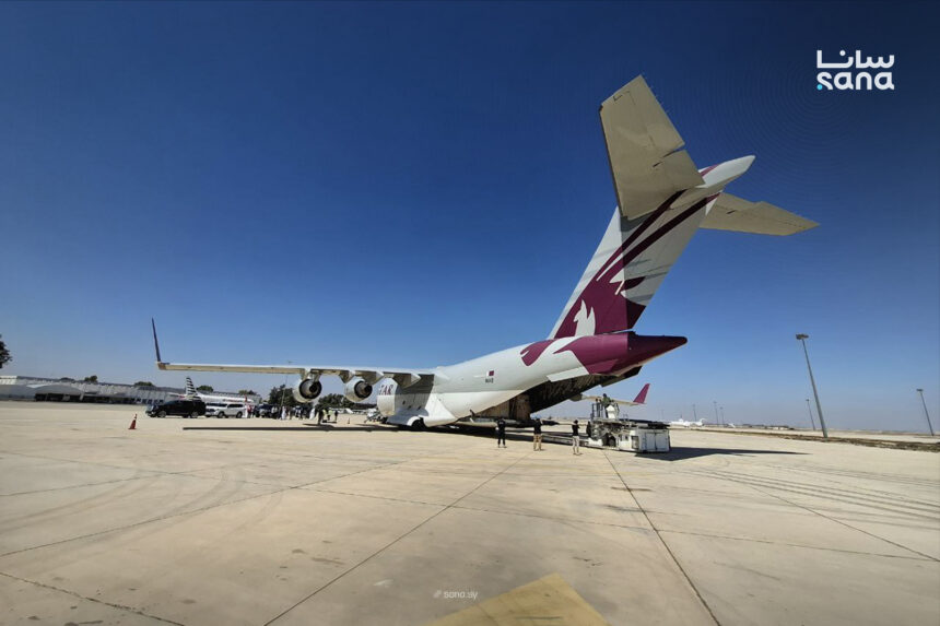 ووفقاً لوكالة سانا فقد وصل الوفد القطري على متن طائرة تابعة للقوات الجوية الأميرية القطرية تحمل 12 طناً من المعدات الطبية الحساسة والدقيقة مقدمة من سدرة للطب وجهات قطرية أخرى لمساعدة المستشفيات السورية على مواصلة تقديم خدماتها الصحية النوعية للمرضى.