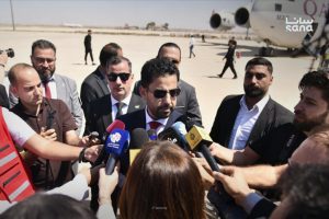 استقبل وزير الصحة مصعب العلي ورئيس منظمة الهلال الأحمر العربي السوري حازم بقلة رئيس مجلس إدارة الهلال الأحمر القطري يوسف بن علي الخاطر والوفد المرافق له في مطار دمشق الدولي.