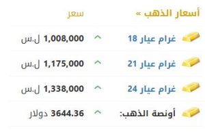 وسجّل سعر غرام الذهب في سوريا (مليون و8 آلاف ليرة سورية – عيار 18)، و(مليون و175 ألف ليرة سورية – عيار 21).