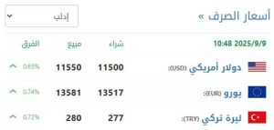 انخفض سعر صرف الليرة السورية مقابل الدولار الأميركي في تداولات اليوم الثلاثاء (09-09-2025)، في حين ارتفعت أسعار الذهب في سوريا، بحسب موقع الليرة اليوم.