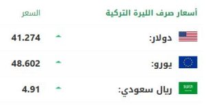 وسجّل سعر صرف الليرة التركية مقابل الليرة السورية (276 شراء – 280 بيع) في سوق دمشق، كما سجّل (41.27 ليرة تركية) مقابل الدولار، ونحو (48.60 ليرة تركية) مقابل اليورو.