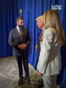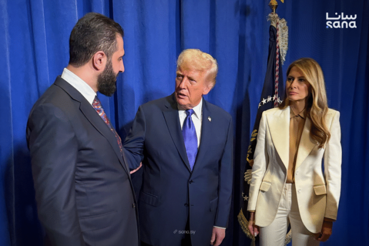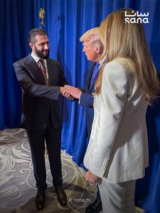 التقى رئيس الجمهورية العربية السورية أحمد الشرع رئيس الولايات المتحدة الأمريكية دونالد ترامب وذلك خلال حفل الاستقبال الذي أقامه الرئيس الأمريكي على هامش أعمال الدورة الثمانين للجمعية العامة للأمم المتحدة في نيويورك بحضور عقيلته ميلانيا ترامب.