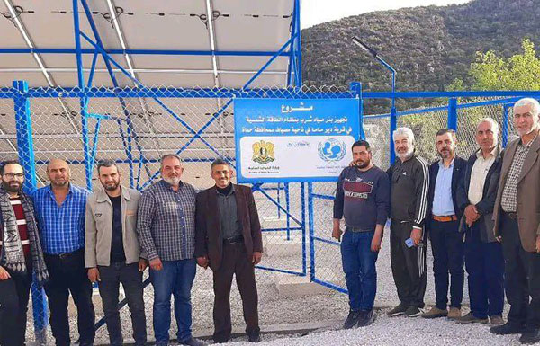 كذلك تم الانتهاء من تركيب منظومة طاقة شمسية تهدف لتشغيل البئر المغذي لشبكة مياه الشرب في قرية طلف، جنوب مدينة حماة، وذلك بجهود مشتركة بين الجهات الحكومية وتعاون المجتمع المحلي، وبالتنسيق مع محافظة حماة، وإدارة المنطقة، ومؤسسة المياه لتجاوز أزمة المياه.