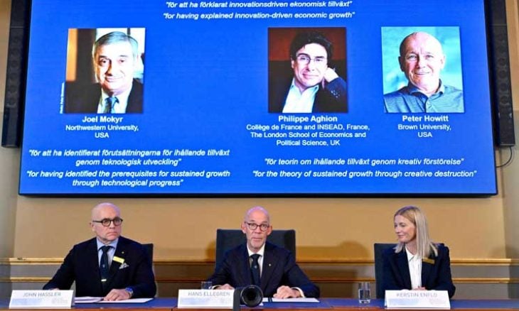 أعلنت الأكاديمية الملكية السويدية للعلوم الاثنين منح جويل موكر وفيليب أجيون وبيتر هاويت جائزة نوبل في الاقتصاد تقديراً “لتفسيرهم للنمو الاقتصادي المدفوع بالابتكار” .