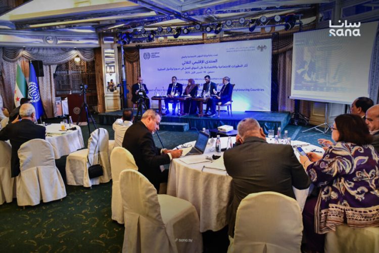أقامت وزارة الشؤون الاجتماعية والعمل اليوم بالتعاون مع منظمة العمل الدولية، المنتدى الإقليمي الثلاثي حول “تأثير التطورات الاجتماعية والاقتصادية على أسواق العمل في سوريا والدول المجاورة”، وذلك في فندق الشام بدمشق.