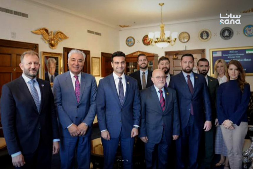 بحث وزير الاقتصاد والصناعة نضال الشعار مع عضوي الكونغرس الأمريكي إبراهيم حمادة وجو ويلسون وعدد من ممثلي المؤسسات البحثية والاقتصادية الأمريكية، آليات دعم المشاريع الاقتصادية في سوريا، وتعزيز مشاركة الشركات الأمريكية في السوق السورية.