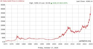 أسعار الذهب خلال الفترة بين 1973 و2025 (Gold Price)