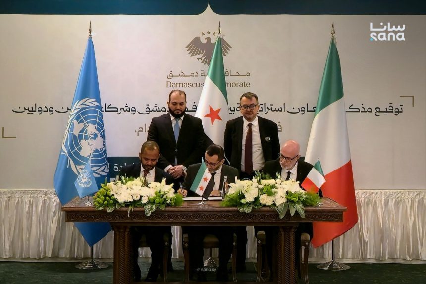وقعت محافظة دمشق اليوم مذكرات تعاون استراتيجية في مجال التخطيط الحضري المستدام مع برنامج الأمم المتحدة الإنمائي “UNDP” وجامعة فينيسيا الإيطالية، وذلك في فندق الشام بدمشق.
