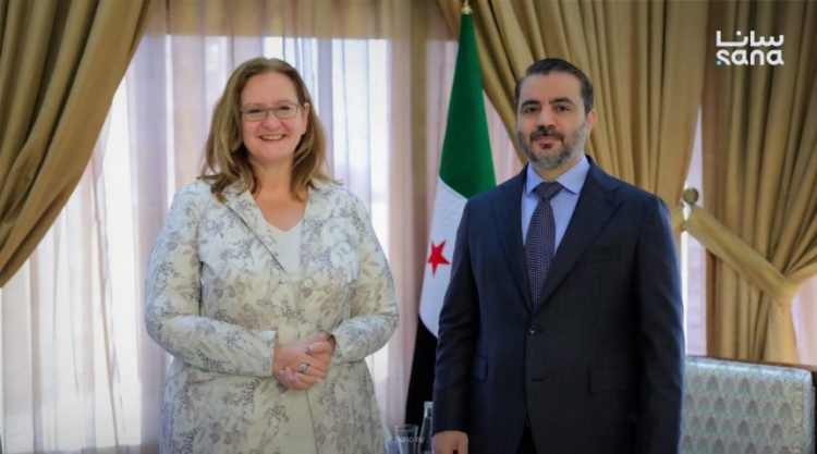 بحث وزير الخارجية والمغتربين أسعد حسن الشيباني مع وزيرة التجارة الخارجية والتنمية الهولندية أوكجيه دي فريز والوفد المرافق سبل تعزيز العلاقات الثنائية والتعاون الاقتصادي والتنموي بين الجمهورية العربية السورية ومملكة هولندا.