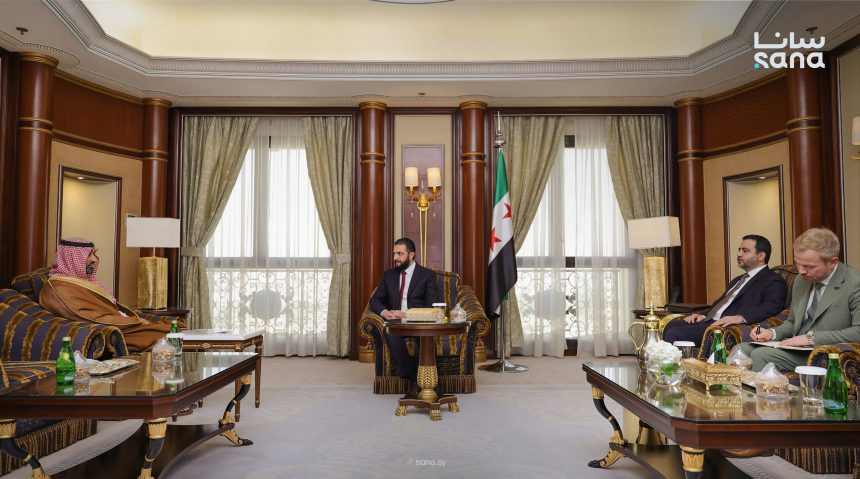 التقى الرئيس أحمد الشرع الأمير نايف بن سلطان آل سعود رئيس مجلس إدارة شركة المراعي السعودية بحضور وزير الخارجية أسعد حسن الشيباني ورئيس هيئة الاستثمار طلال الهلالي وذلك على هامش أعمال مؤتمر مبادرة مستقبل الاستثمار في نسخته التاسعة المنعقدة في الرياض.