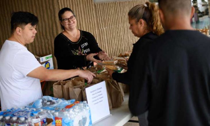في أماكن أخرى من المدينة اصطف آلاف الأشخاص الذين لم يحصلوا على معونات غذائية أو يخشون عدم الحصول عليها قريبا في سياراتهم أمام استاد “إن آر جي” حيث يوزع بنك الطعام في هيوستن فاكهة ومواد غذائية غير قابلة للتلف.