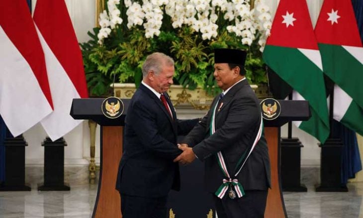العاهل الأردني الملك عبد الله الثاني يصافح الرئيس الإندونيسي برابوو سوبيانتو