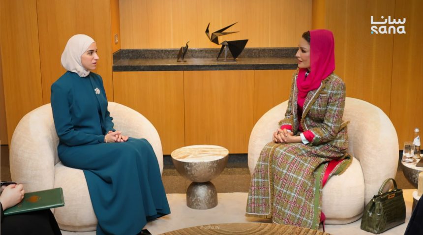 التقت عقيلة الرئيس السوري أحمد الشرع، السيدة لطيفة الدروبي، اليوم في العاصمة القطرية الدوحة، بالشيخة موزا بنت ناصر رئيسة مجلس إدارة مؤسسة قطر للتربية والعلوم وتنمية المجتمع، والشيخة هند بنت حمد آل ثاني نائبة رئيس مجلس الإدارة والرئيس التنفيذي للمؤسسة.