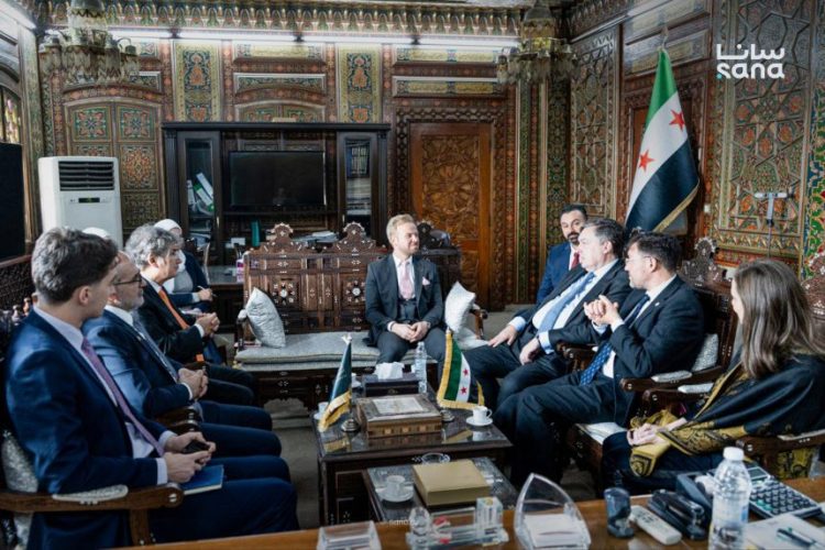 بحث رئيس هيئة الاستثمار السورية طلال الهلالي مع وفد من مجلس الأعمال السوري البريطاني سبل تعزيز التعاون الاقتصادي بين الجانبين وآفاق الاستثمار في سوريا.