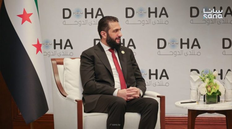 التقى الرئيس أحمد الشرع أمير دولة قطر الشيخ تميم بن حمد آل ثاني، وذلك في اليوم الأول من أعمال منتدى الدوحة 2025 المنعقد في الدوحة، بحضور وزير الخارجية والمغتربين أسعد حسن الشيباني.
