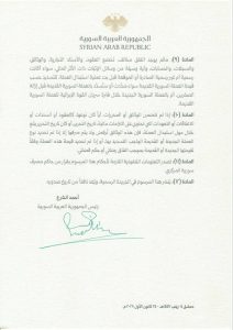 المادة (12): يُنشر هذا المرسوم في الجريدة الرسمية، ويُعد نافذاً من تاريخ صدوره.