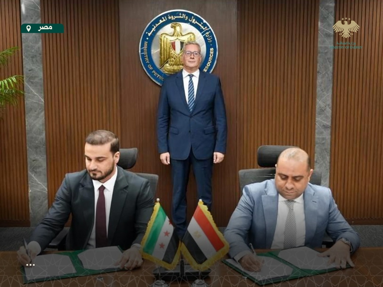 ومثّلَ الجانب السوري معاون وزير الطاقة لشؤون النفط غياث دياب فيما مثّل الجانب المصري المستشار القانوني في وزارة البترول والثروة المعدنية الدكتور محمد الباكوري بحضور وزير البترول والثروة المعدنية المصري المهندس كريم بدوي.
