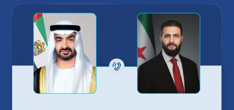 كما تناول الاتصال سبل دعم سوريا ومشاركة دولة الإمارات في جهود إعادة الإعمار إضافة إلى تعزيز فرص الاستثمار في سوريا.