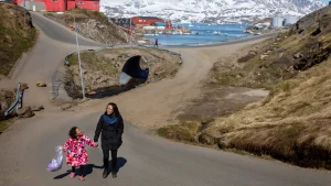 كما أن التضاريس وعرة، حيث يُغطى الجليد حوالي 80% من غرينلاند ويتوزع سكان الجزيرة البالغ عددهم 57,000 نسمة على مساحة 2.2 مليون كيلومتر مربع، مع بنية تحتية محدودة ولا يُمكن الوصول إلى العديد من المناطق إلا بالقوارب أو المروحيات في الأحوال الجوية الجيدة.