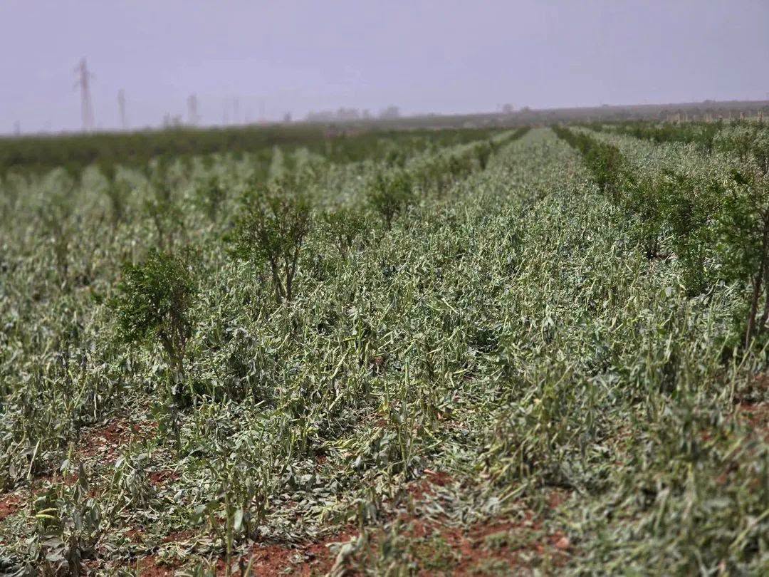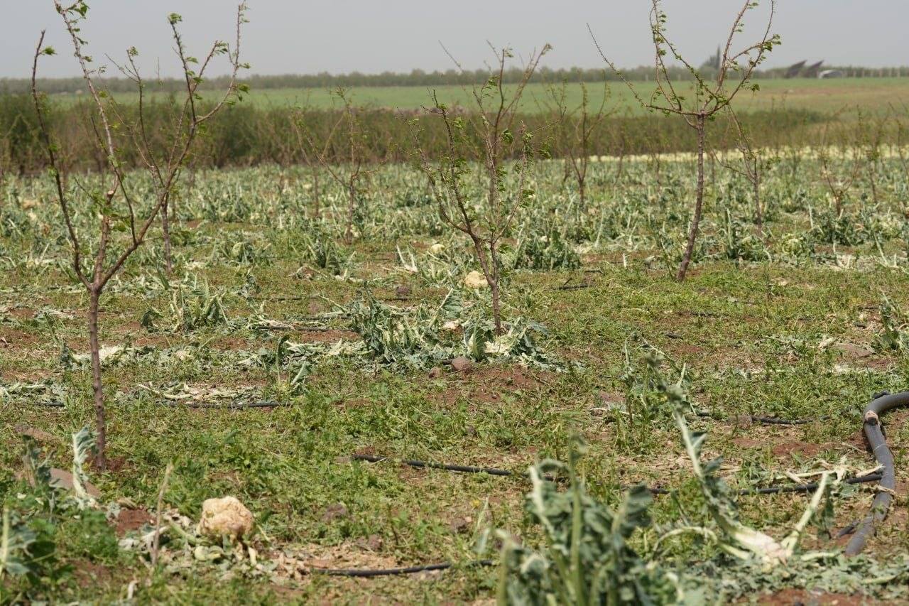 واطلع الفريق بصحبة فلاحي المنطقة على ما خلفته تلك العاصفة من ضرر قدر بنحو 80% من إنتاجهم المتوقع لهذا الموسم بسبب الهطولات الغزيرة الأخيرة المصحوبة بحبات البرد.